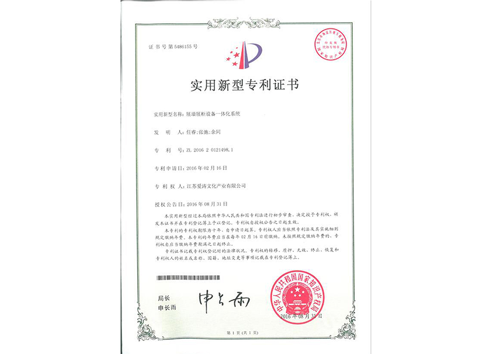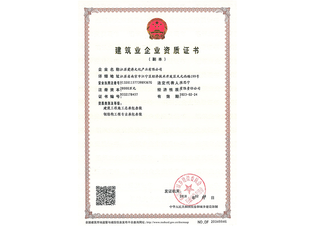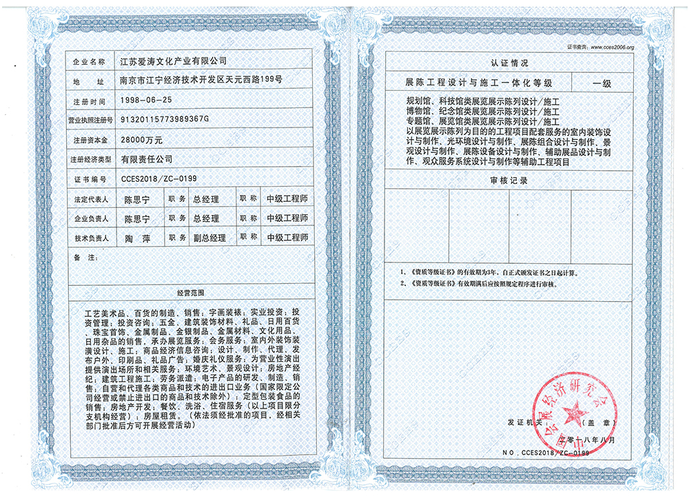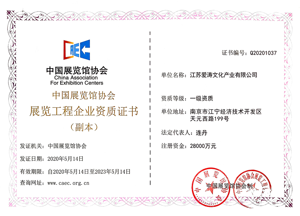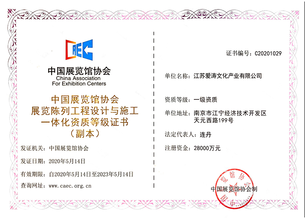 中國展覽館協會展覽陳列工程設計與施工一體化資質等級證書