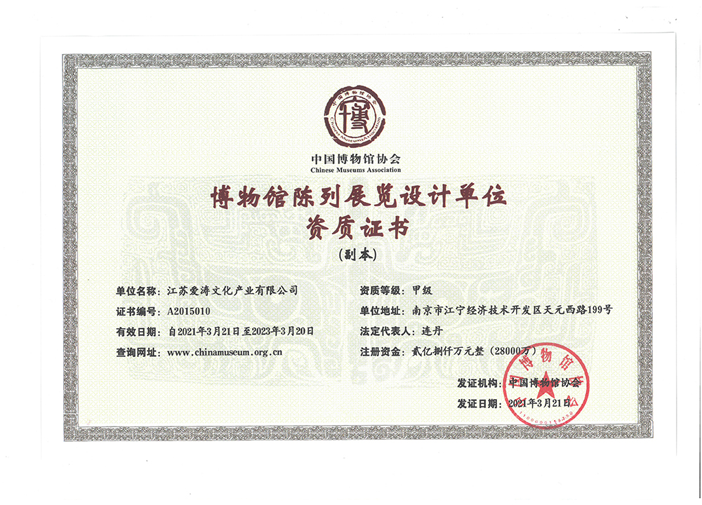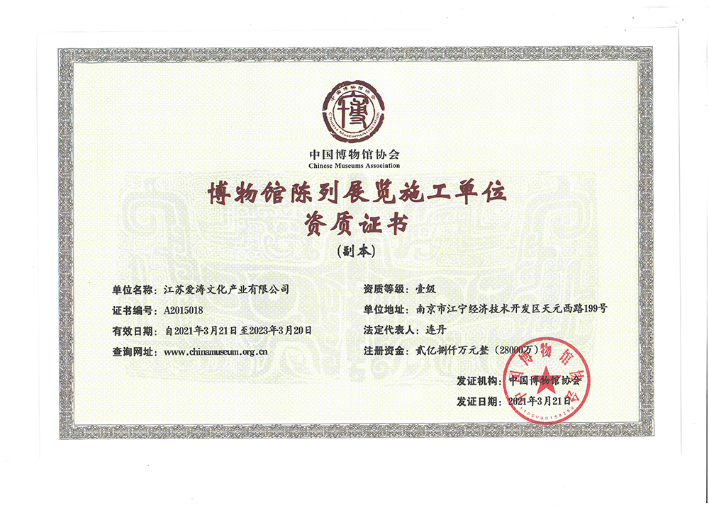 中國博物館協會博物館陳列展覽施工單位資質證書