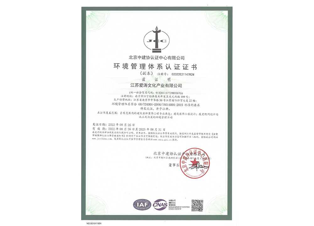 環境管理體系認證證書