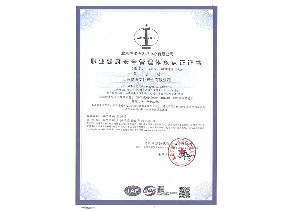 職業健康安全管理體系認證證書