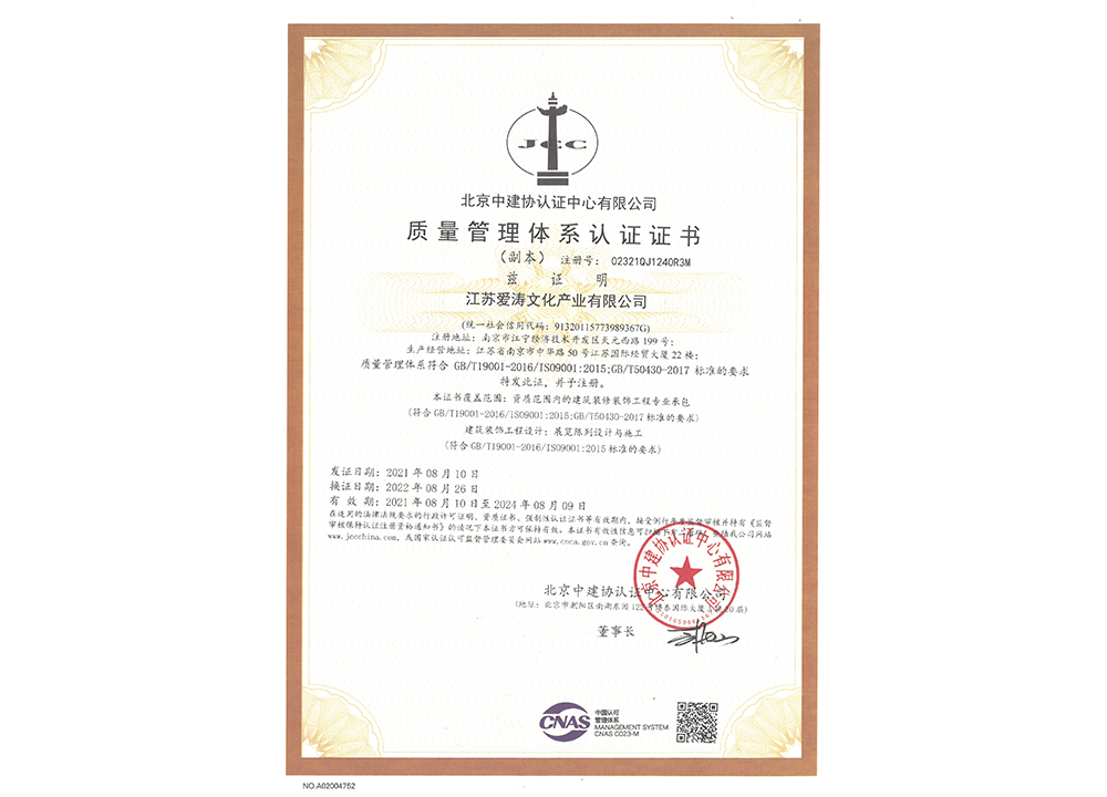 質量管理體系認證證書