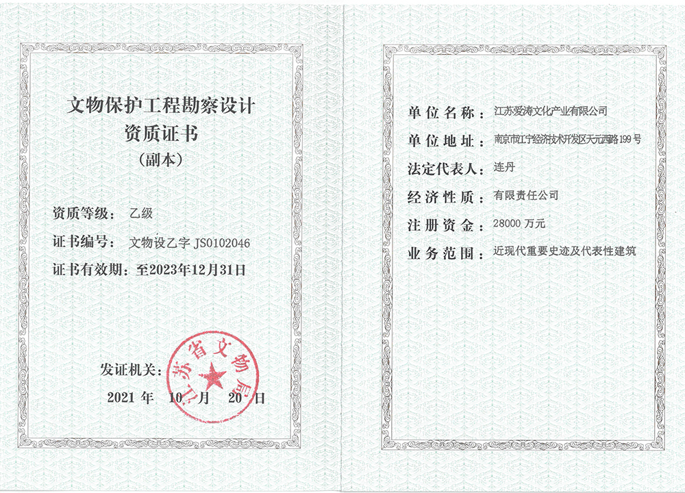 文物保護工程勘察設計乙級